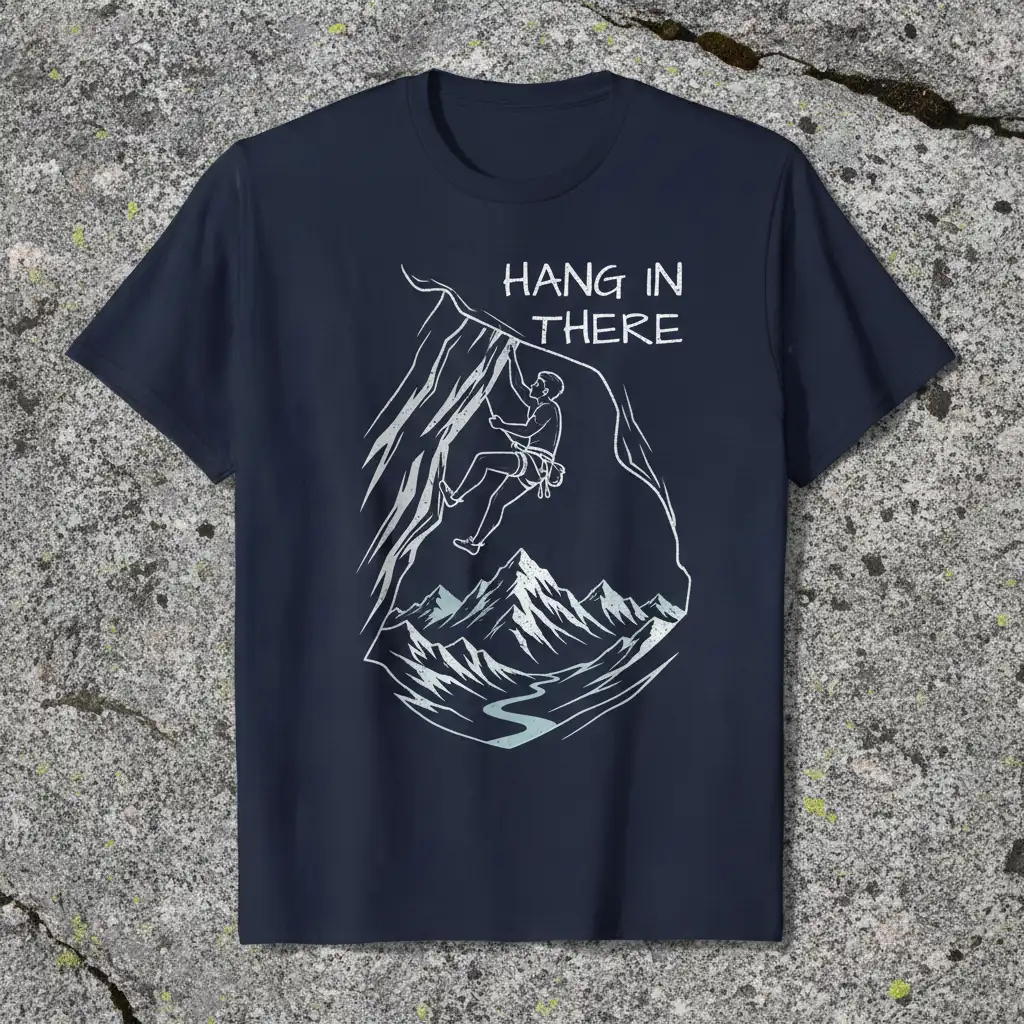 Hang In There, the ultimate motivational phrase, is perfectly captured on this unique t-shirt, designed for those who embrace challenges and celebrate the spirit of adventure. This graphic tee is more than just apparel; it’s a statement of resilience, determination, and the sheer joy of pushing your limits. Whether you’re a seasoned climber, an avid hiker, or simply someone who appreciates a powerful message, this shirt is crafted to inspire you daily. Its eye-catching design brings the thrill of the outdoors right to your wardrobe, making it a standout piece for any casual occasion.
