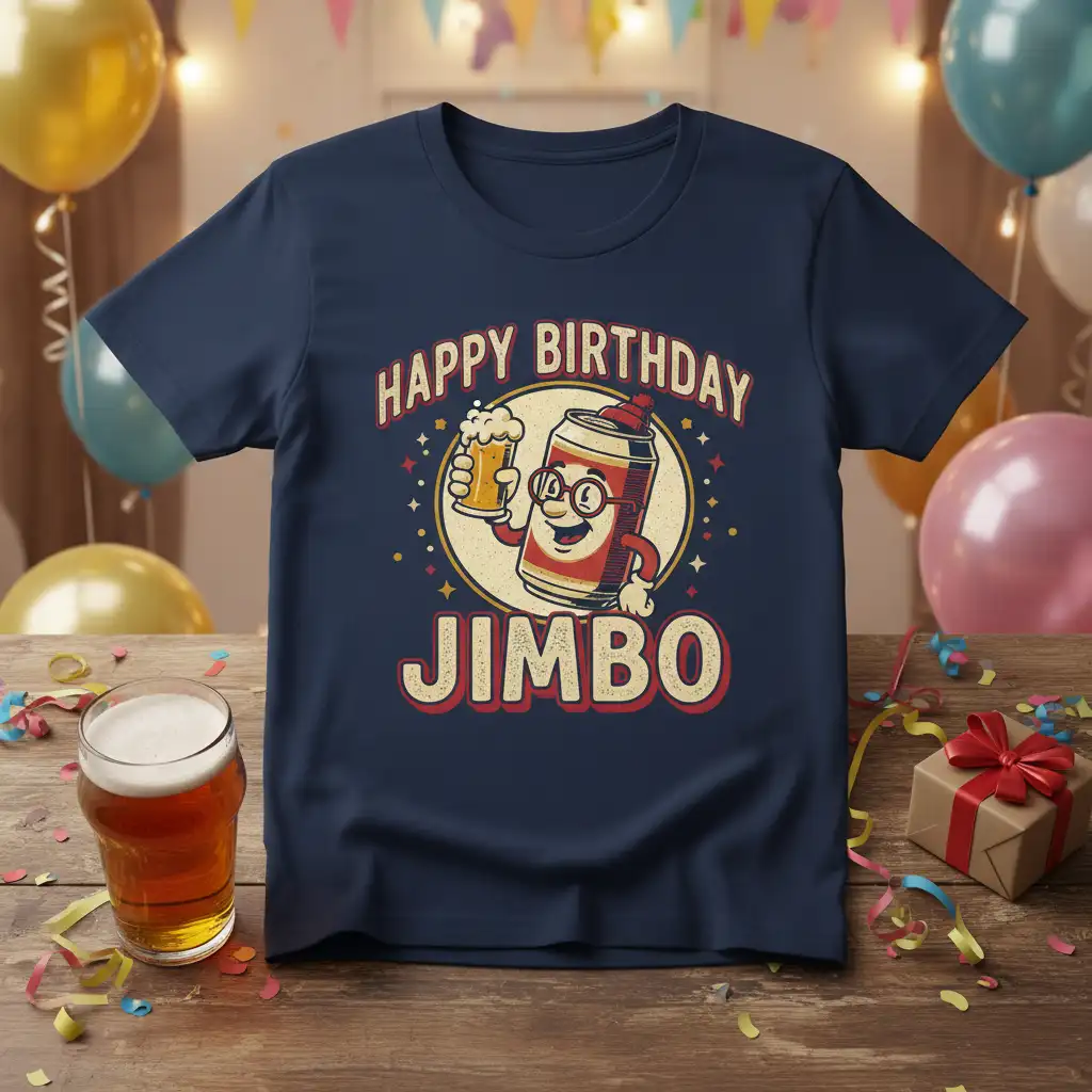 Happy Birthday Jimbo! Make his next celebration truly special with this unique and festive t-shirt. Designed to bring smiles and laughter, this tee captures the spirit of birthday fun with a playful beer can character. It’s the perfect way to toast to another year and create lasting memories. This design is sure to be a hit, making his birthday unforgettable.