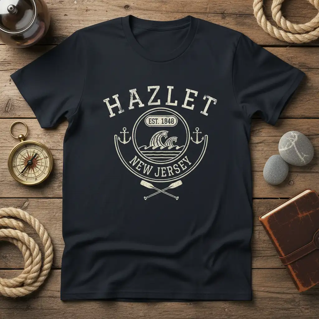 Show your Hazlet New Jersey pride with this Est 1848 vintage t-shirt, featuring a classic nautical design. Crafted for comfort and style, this tee is the perfect way to commemorate your favorite coastal town. It makes an excellent gift for anyone who loves Hazlet or the Jersey Shore.