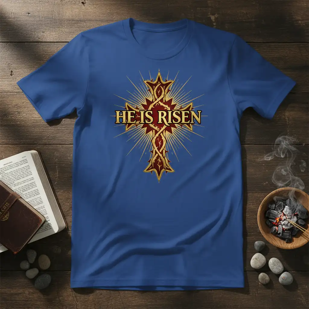 Celebrate Resurrection Day with a garment that truly embodies its meaning. The “He Is Risen” T-Shirt is a profound symbol of the victory over death and the promise of eternal life. Its design is both visually captivating and spiritually resonant, making it a must-have for your holiday celebrations. Wear it proudly and let the message of hope and salvation shine through. Order your “He Is Risen” T-Shirt today and share the joyous news!