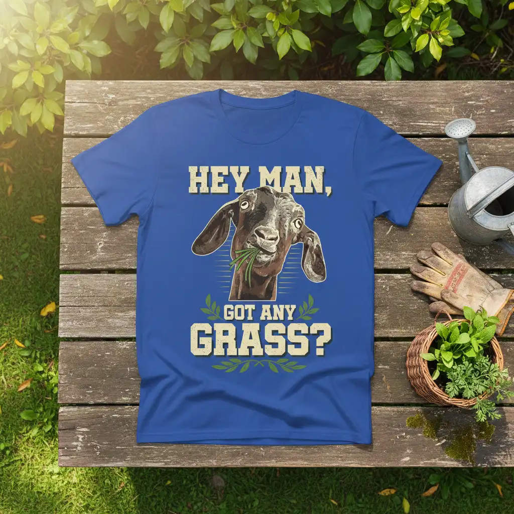 Embrace your inner farmer or goat enthusiast with the “Hey Man, Got Any Grass?” t-shirt. This hilarious design features a charming goat with a playful query, making it the perfect conversation starter. Crafted for comfort and durability, it’s an ideal gift for anyone who appreciates farm life and a good laugh.