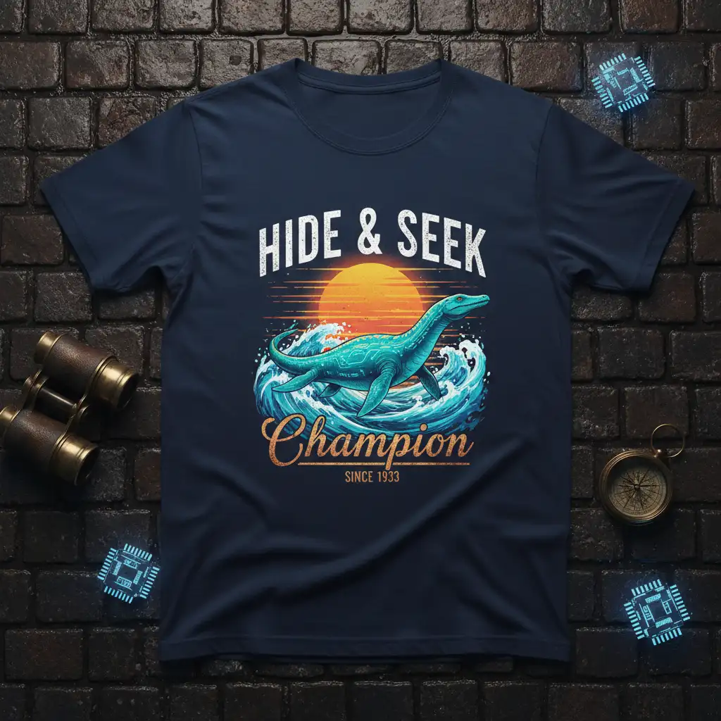 Hide & Seek Champion Since 1933 design celebrates the enduring enigma of the deep sea and its most elusive inhabitants. This t-shirt is for those who appreciate the thrill of mystery, the fascination of cryptids, and the allure of prehistoric creatures. It features a striking illustration that captures the imagination, making it a standout piece for any wardrobe. Perfect for sparking conversations and showcasing a unique sense of style.