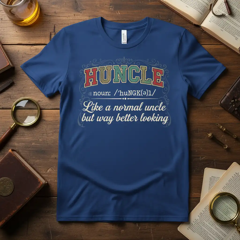 This tee captures the essence of what makes an uncle truly stand out. It humorously defines “Hun” as someone who possesses all the admirable traits of a typical uncle, yet elevates them with an undeniable sense of style and appeal. This design is a fantastic conversation starter and a proud declaration for any man who embraces his role as the coolest relative.