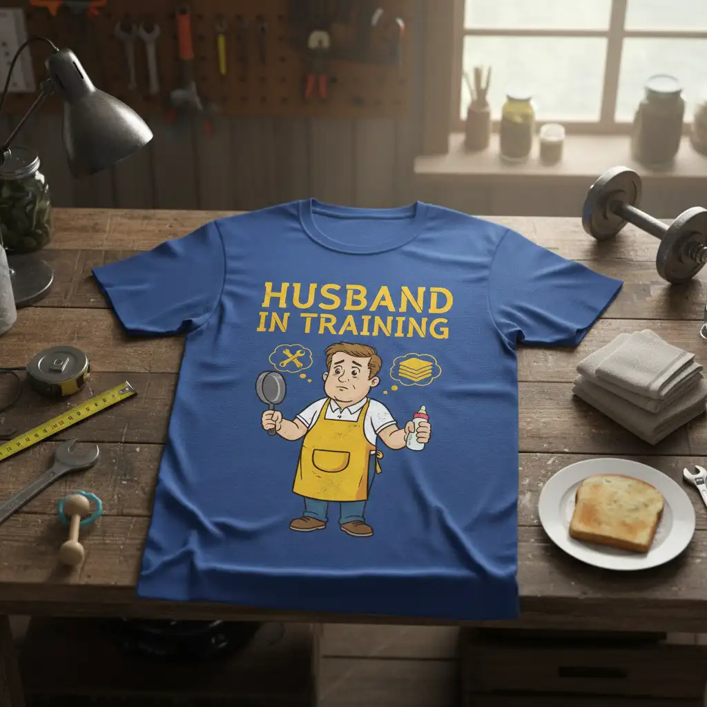 This Husband In Training design features a charming illustration that perfectly complements the text, adding a visual narrative to the phrase. This t-shirt is ideal for anyone who loves to share a laugh about life’s adventures and milestones. It’s a fantastic way to show off a sense of humor and a positive outlook on domestic life and future family responsibilities.