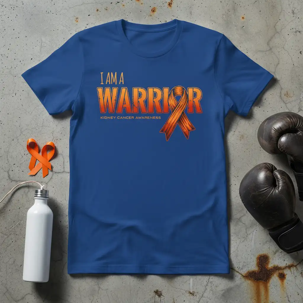 This “I Am A Warrior” t-shirt is designed to empower and uplift those affected by kidney cancer. The bold, striking text coupled with the iconic orange awareness ribbon creates a powerful visual statement. It’s perfect for patients, survivors, caregivers, and advocates who want to visibly represent their fight and raise awareness for kidney cancer research and support initiatives.