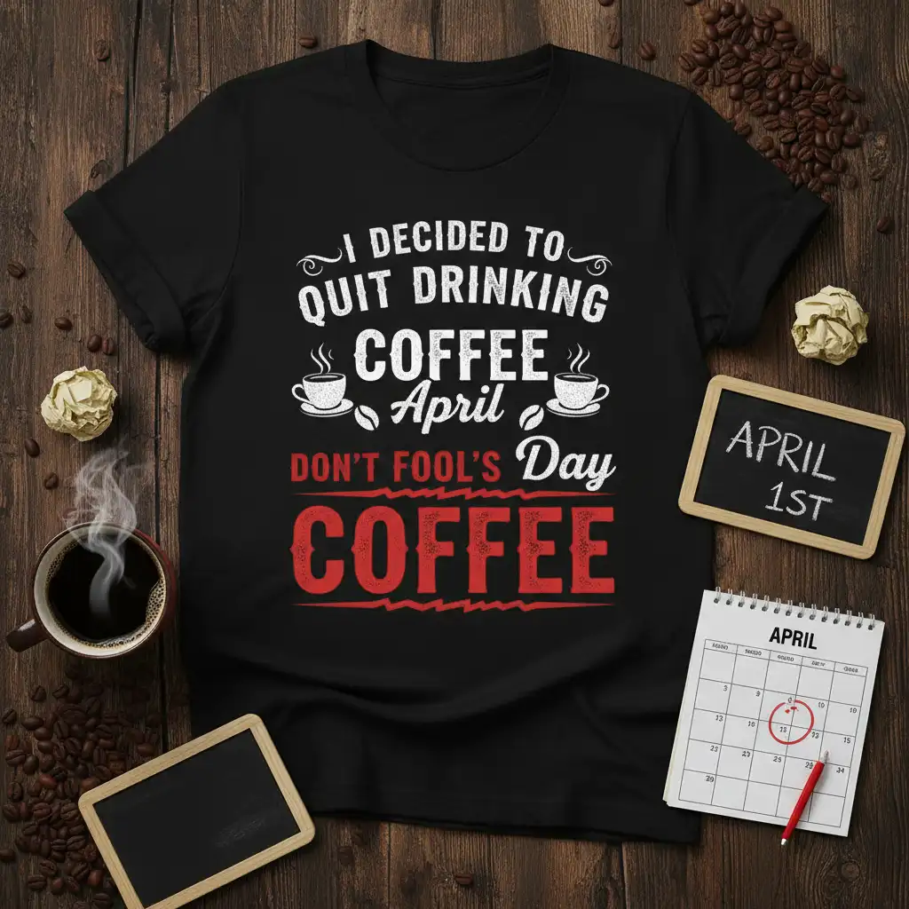 Don’t miss out on the chance to own or gift this exceptionally witty t-shirt. It’s a fantastic way to showcase your personality and your unwavering dedication to coffee. Order yours today and let the world know that while you might *decide* to quit drinking coffee, April Fool’s Day is the perfect excuse to embrace your addiction with a laugh. Add this humorous coffee tee to your collection and wear your love for caffeine proudly!