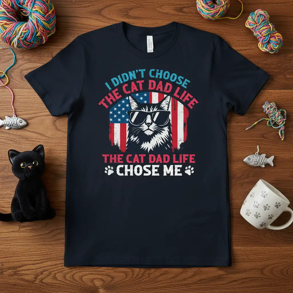 This t-shirt is more than just clothing; it’s a symbol of the incredible bond shared between cat dads and their beloved pets. It’s a humorous and heartfelt way to express the unique relationship that defines cat parenthood. The design encapsulates the idea that this life isn’t just a choice, but a destiny guided by our feline overlords. So, whether it’s a gift for a special occasion or a treat for yourself, this tee is sure to be a favorite. Get yours today and let the world know that the cat dad life chose you!