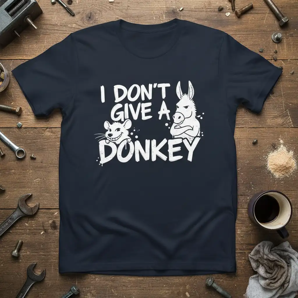 This I DON’T GIVE A DONKEY design is a brilliant choice for anyone who enjoys sarcastic humor and witty commentary. The visual pairing of the sly mouse and the unimpressed donkey creates a memorable image that perfectly complements the bold text. It’s a design that resonates with those who understand that sometimes, the best response is a humorous dismissal. This tee is crafted to be a conversation starter, bringing smiles and maybe a knowing nod from others who appreciate its cheeky message.