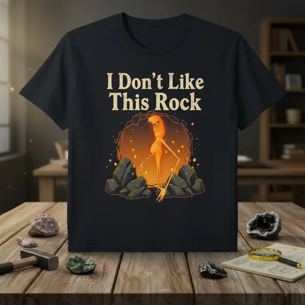 I Don’t Like This Rock. This quirky and humorous t-shirt is perfect for anyone with a passion for geology, earth science, or simply a good pun. It features a unique design that’s sure to spark conversations and bring a smile to fellow enthusiasts. Whether you’re a seasoned geologist or a budding rock collector, this tee speaks your language. Its comfortable fit and durable print make it an ideal addition to any casual wardrobe. Show off your love for all things geological with this standout piece.