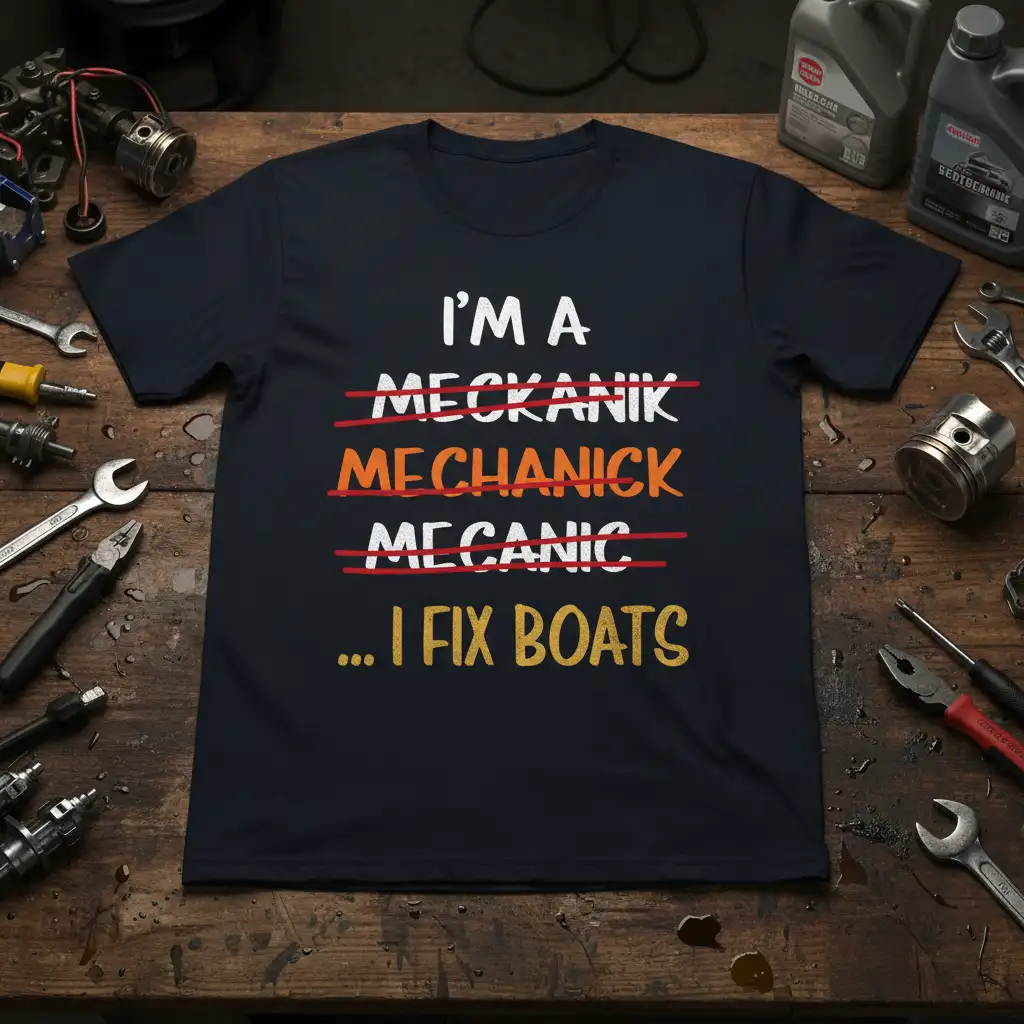 I’m A Mekanik Mechanick Mecanic … I Fix Boats design proudly declares the true profession of those who keep watercraft running smoothly. This t-shirt is more than just apparel; it’s a badge of honor for the dedicated individual who understands the intricacies of marine engines and hull repairs. It humorously acknowledges the common struggles with spelling the word “mechanic” before landing on the definitive statement of expertise. Perfect for anyone who spends their days with wrenches in hand, focused on bringing boats back to life on the water.