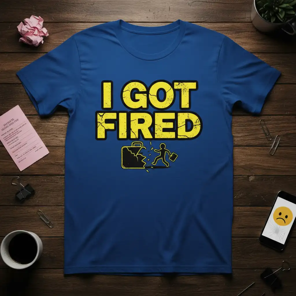 Pick from Black, Navy, Royal, Dark Heather, Red, and White to match your mood and wardrobe staples. Each colorway keeps the I GOT FIRED design clear and photo-ready for everyday wear.