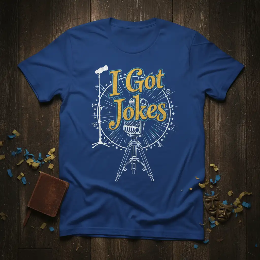 The “I Got Jokes” graphic is not only visually appealing but also serves as an instant icebreaker, perfect for social gatherings or networking events within the comedy circuit. It’s a wearable piece of art that celebrates the power of laughter and the craft of joke-telling. Make it your go-to shirt for expressing your personality and love for all things funny.