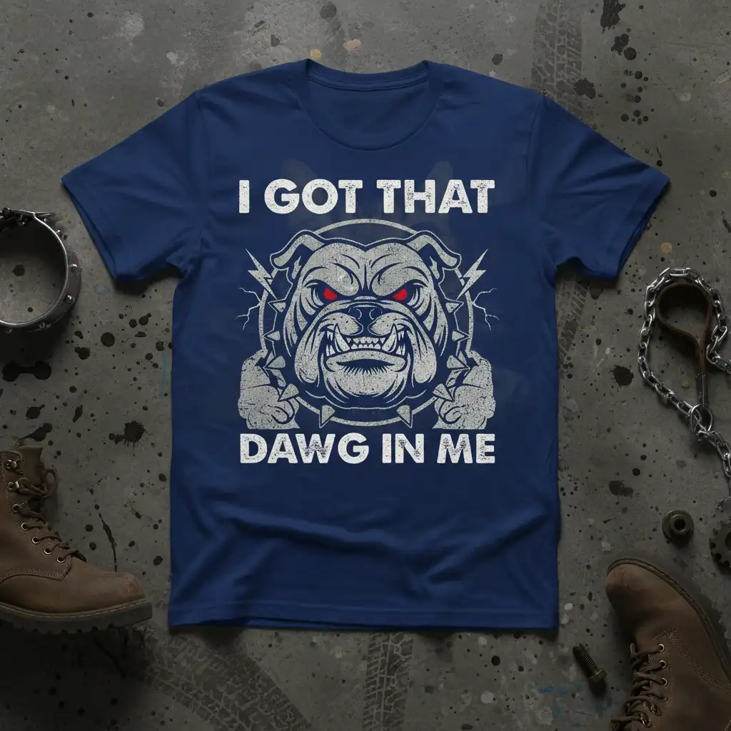The phrase “I Got That Dawg In Me” is printed in bold, impactful lettering, perfectly complementing the fierce imagery. This design is a conversation starter, an expression of a mindset that refuses to back down. It’s perfect for anyone who embodies the spirit of a bulldog: loyal, determined, and ready for action.