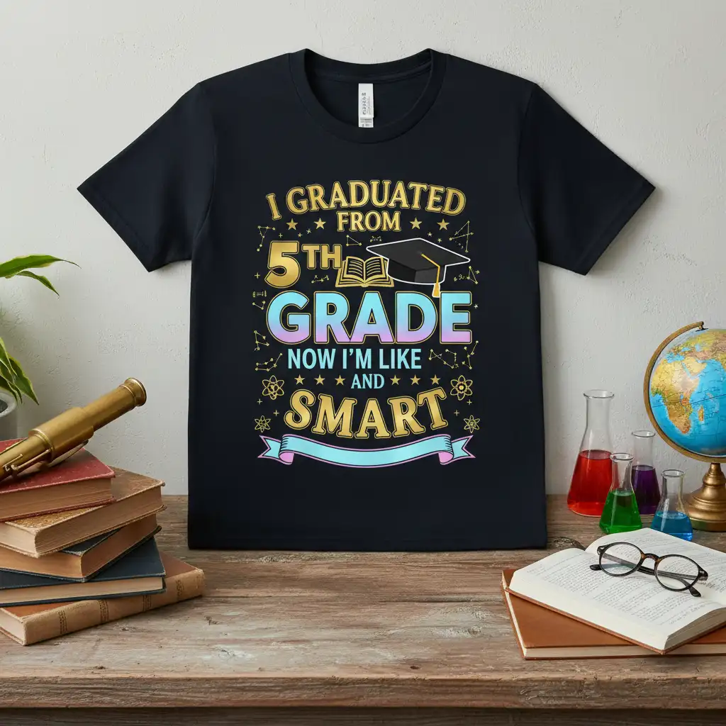Don’t miss out on this must-have graduation tee! It’s the ultimate way for any 5th grader to celebrate their smarts and their hard-earned success. Grab this fantastic t-shirt today and let them wear their achievement proudly. It’s the perfect addition to any young scholar’s wardrobe, celebrating this pivotal moment in their educational journey.