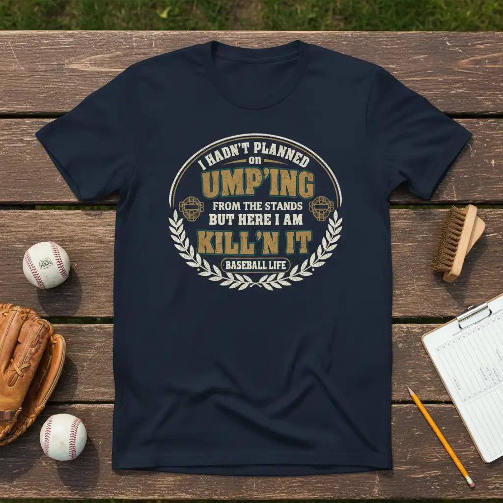 Celebrate the umpire life with this “I Hadn’t Planned On Ump’ing From The Stands But Here I Am Kill’n It” tee. It’s the perfect way for any baseball umpire or fan to show their passion for the game. This comfortable and stylish shirt makes a fantastic gift for any occasion.