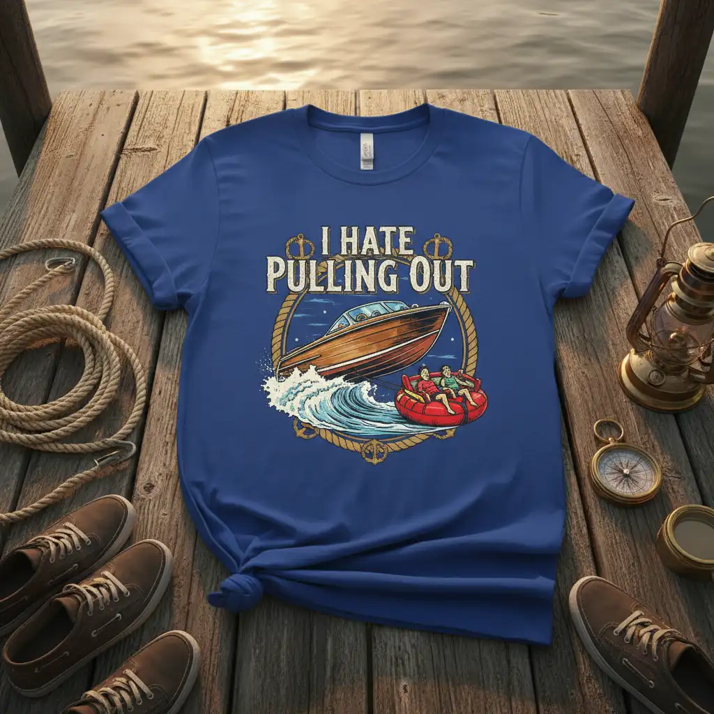 Embrace the thrill of the open water with our “I Hate Pulling Out” t-shirt, designed for true boating aficionados. This comfortable and stylish tee is perfect for anyone who loves lake life and water sports. It makes a fantastic gift for boat owners and tubing enthusiasts alike.