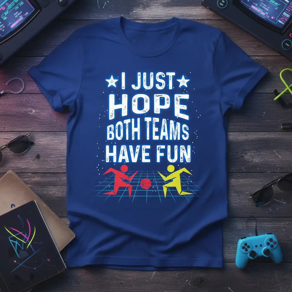 I Just Hope Both Teams Have Fun, this t-shirt is designed for the true sports enthusiast who appreciates the spirit of the game. It’s more than just apparel; it’s a statement of good sportsmanship and a celebration of friendly competition. The design features bold, eye-catching text that resonates with anyone who loves to play or watch sports, capturing the essence of why we participate in athletic activities. This tee is perfect for wearing to games, practices, or just casual outings, making it a versatile addition to any wardrobe. Its positive message is sure to bring a smile to faces and foster a sense of camaraderie among fellow fans and players.