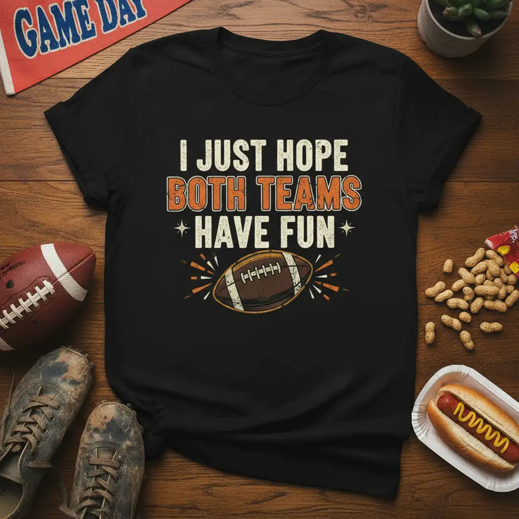 I Just Hope Both Teams Have Fun, and this t-shirt is the perfect way to express that sentiment. Designed for the true football enthusiast, it captures the lighthearted spirit of game day. Whether you’re tailgating, watching from the stands, or cheering from your couch, this tee is a must-have. It’s a statement piece that resonates with fans who appreciate the camaraderie and excitement of the sport, proving that sometimes, the best part of the game is simply enjoying the experience. Get ready to make a statement and show your love for football with this unique and comfortable apparel.