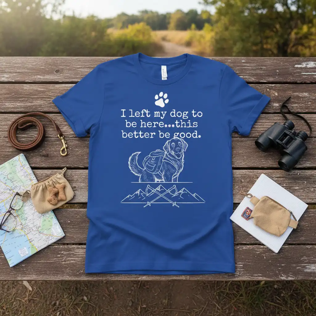 Whether you’re hitting the trails or just enjoying a day out, this “I left my dog to be here…this better be good.” t-shirt is the perfect companion. It’s a fun, stylish, and comfortable way to express your love for your dog and your adventurous spirit. Click ‘Add to Cart’ now to snag this amazing piece of dog-themed apparel and let everyone know who truly rules your world. This shirt is a fantastic gift idea for any occasion, guaranteed to bring a smile to any dog lover’s face!