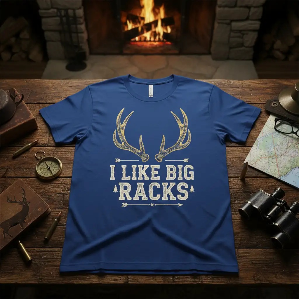 The “I Like Big Racks” t-shirt is specifically designed for those who understand the allure of a successful hunt. Featuring a bold graphic of deer antlers paired with the memorable slogan, this tee resonates with the core of hunting culture. It’s a conversation starter that connects you with fellow enthusiasts who share your passion for the outdoors and the pursuit of big game. This shirt is crafted for comfort and durability, ensuring it stands up to your adventures.
