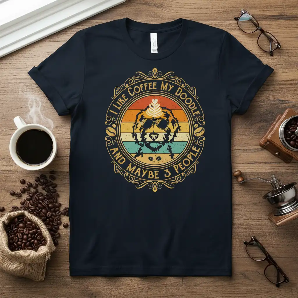 I Like Coffee My Doodle And Maybe 3 People this statement t-shirt is a must-have for any devoted doodle owner who also happens to be a serious coffee enthusiast. It perfectly captures that relatable feeling of prioritizing your furry best friend and your morning cup of joe, with a humorous nod to social interactions. This design is a fantastic way to showcase your unique personality and passions, sparking smiles and conversations wherever you go. Get ready to wear your love for doodles and caffeine proudly!