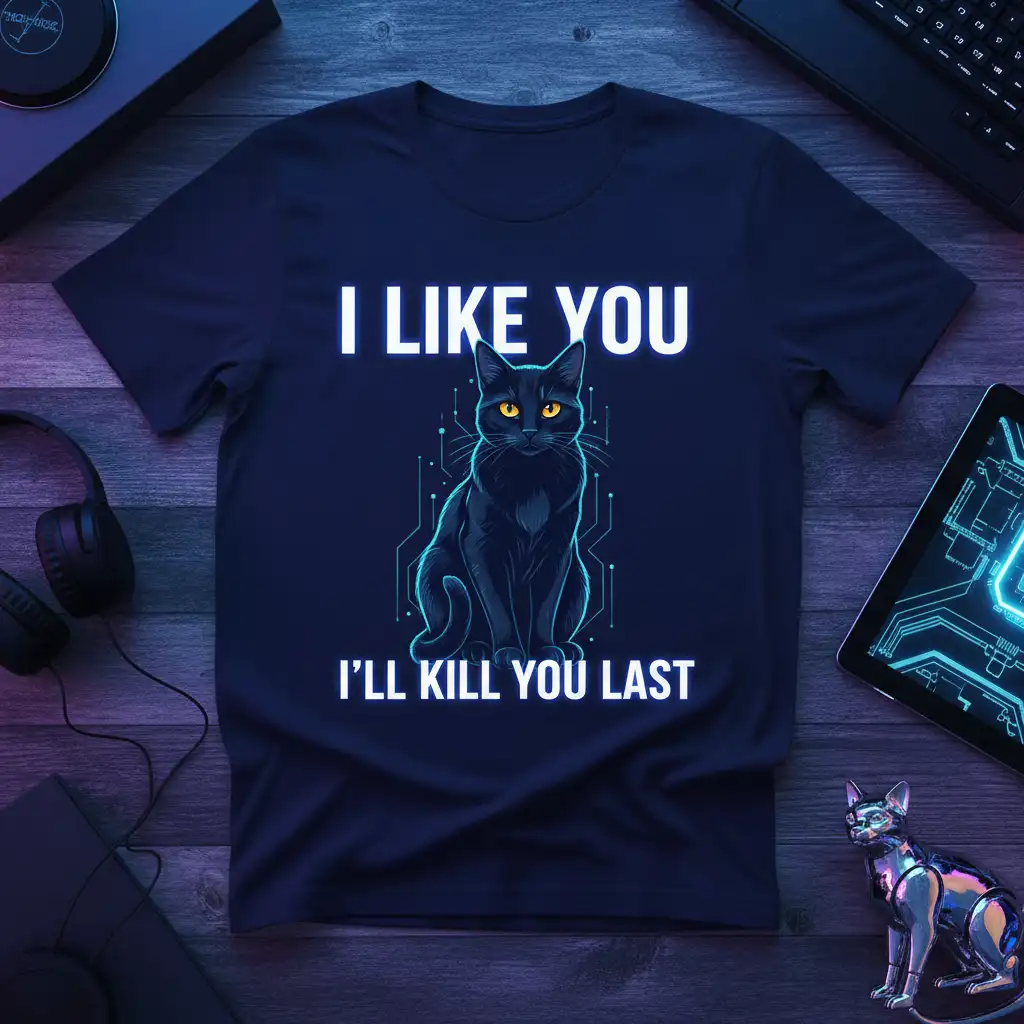 Don’t miss out on the opportunity to own this hilarious and stylish “I Like You I’ll Kill You Last” t-shirt. It’s the perfect way to inject some humor and personality into your wardrobe or to surprise a fellow cat enthusiast with a truly unique gift. Click ‘Add to Cart’ now and get ready to embrace your inner cat with this unforgettable tee!