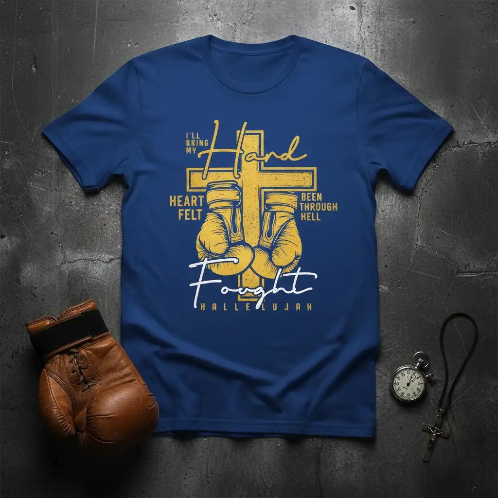 I’ll Bring My Hand Heart Felt Been Through Hell Fought Hallelujah is more than just a phrase; it’s a declaration of faith, resilience, and the unwavering spirit of a true warrior. This powerful Christian boxer t-shirt captures the essence of overcoming challenges with divine strength and a determined heart. It’s designed for individuals who face life’s battles head-on, finding their courage and conviction through their faith. The striking graphic and impactful text serve as a constant reminder of the inner fortitude and spiritual grounding that guides every step. This tee is perfect for athletes, believers, and anyone who understands that the toughest fights are often won with faith as their ultimate weapon.
