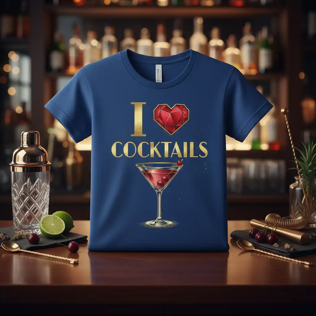 This striking t-shirt proudly displays the phrase “I Love Cocktails” in a sophisticated gold font, immediately catching the eye. The design is enhanced by a beautiful red diamond heart, symbolizing a deep affection for these popular beverages. It’s the perfect way to express your enthusiasm for bar culture and the enjoyment of fine drinks. This tee is more than just clothing; it’s a conversation starter and a badge of honor for cocktail lovers everywhere.