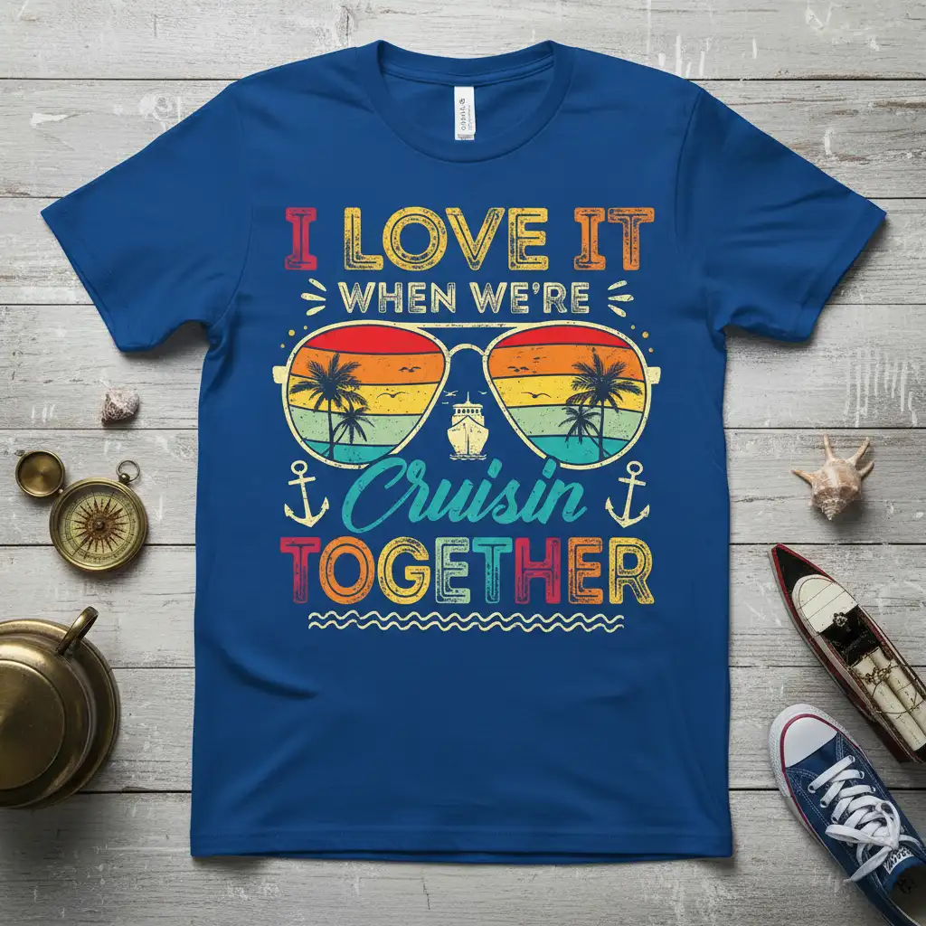 This “I LOVE IT WHEN WE’RE Cruisin TOGETHER” t-shirt is a testament to the joy of shared experiences. It’s an ideal gift for a partner, spouse, or any couple embarking on a cruise. Surprise them with a present that celebrates their bond and their love for travel, creating a special memento of their journey. This shirt is sure to become a favorite, worn on future trips and fondly remembered.