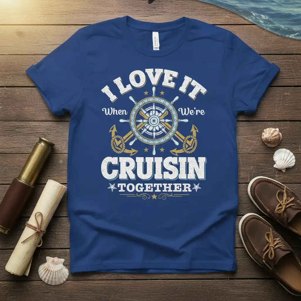 I LOVE IT WHEN WE’RE CRUISIN TOGETHER, and this t-shirt is the perfect way to express that sentiment. Designed for couples who cherish their time on the water, this shirt captures the essence of a shared adventure. Whether you’re planning your next big cruise or reminiscing about past voyages, this apparel celebrates the joy of sailing side-by-side. It’s more than just clothing; it’s a declaration of shared passion for the open sea and the memories you create together on every journey.