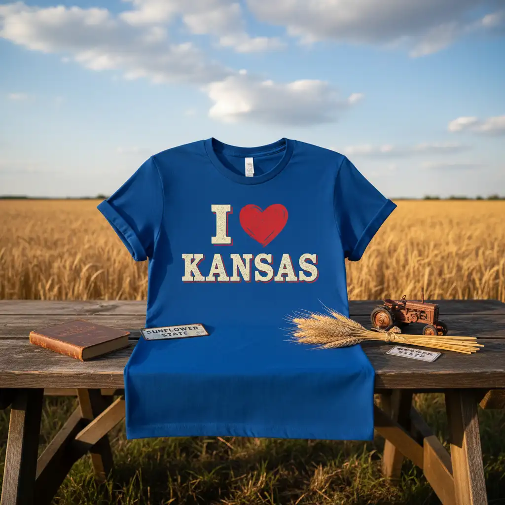 Don’t miss out on the chance to own this iconic “I Love Kansas” t-shirt. It’s the perfect blend of comfort, style, and state pride, making it an essential item for any Kansan or admirer of the Sunflower State. Whether for yourself or as a gift, this tee is sure to be a hit. Order yours today and let your Kansas love shine through!