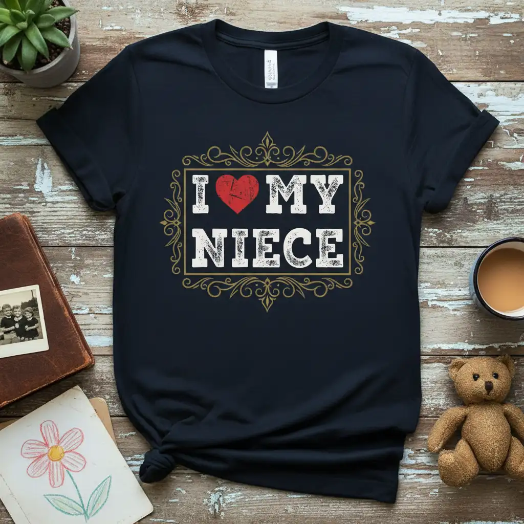 Don’t miss the opportunity to own this charming “I Love My Niece” T-Shirt. It’s a beautiful way to celebrate the precious relationship you have with your niece and to carry that love with you wherever you go. This tee is perfect for expressing your affection and making your niece feel incredibly special. Order yours today and wear your niece-love proudly!