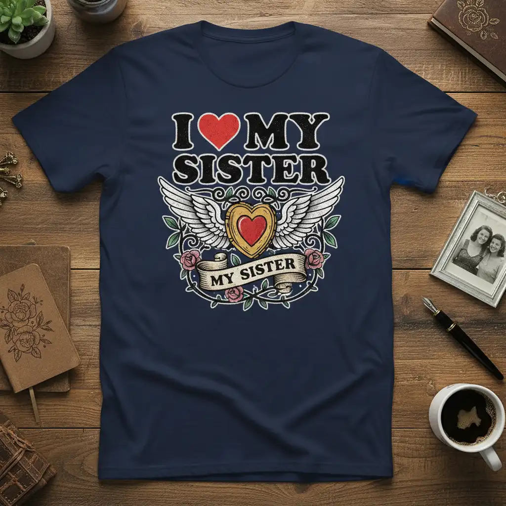 Pick from Black, Navy, Royal, Dark Heather, Red, and White to match your mood and wardrobe staples. Each colorway keeps the I Love My Sister design clear and photo-ready for everyday wear.