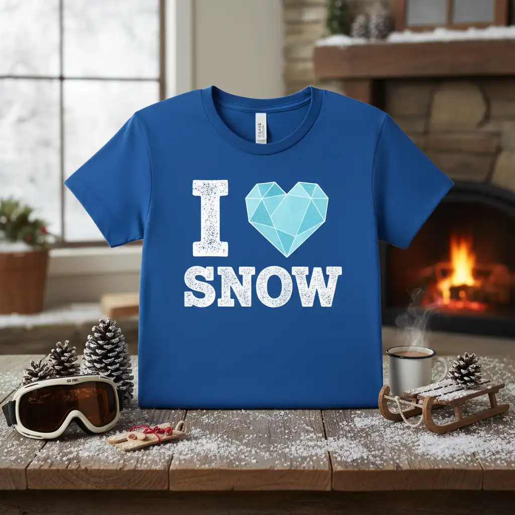 Crafted with high-quality materials, this T-Shirt is built for comfort and longevity. The soft cotton blend feels great against the skin, and the print is designed to resist fading and cracking. This attention to detail ensures that your “I Love Snow” T-Shirt will remain a favorite for seasons to come, providing both style and comfort.