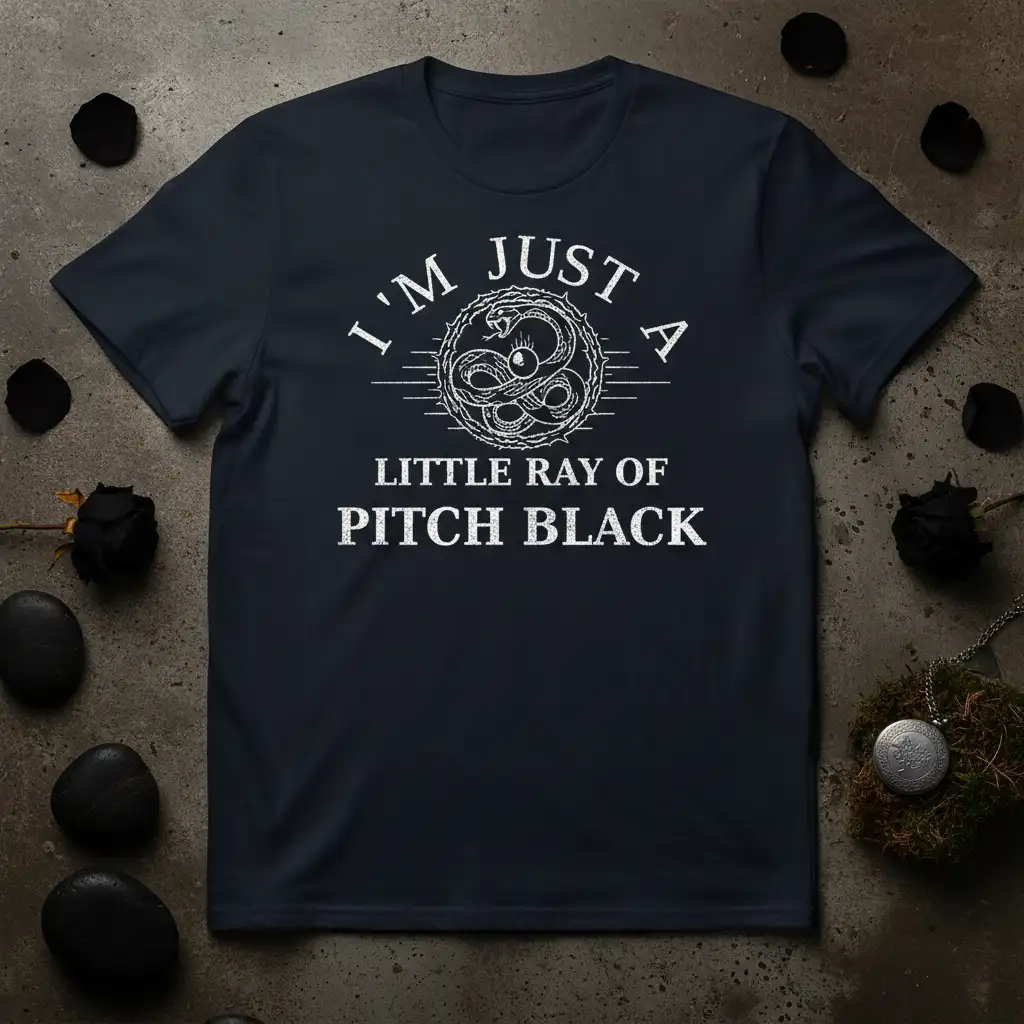 Don’t shy away from expressing your true self. The “I’m Just A Little Ray Of Pitch Black” t-shirt is a powerful way to communicate your personality and embrace your unique outlook on life. It’s more than just apparel; it’s a badge of honor for those who march to the beat of their own drum. Grab this statement tee today and let the world know you’re embracing your inner darkness with pride and a sense of humor. It’s time to wear your attitude and make a lasting impression.