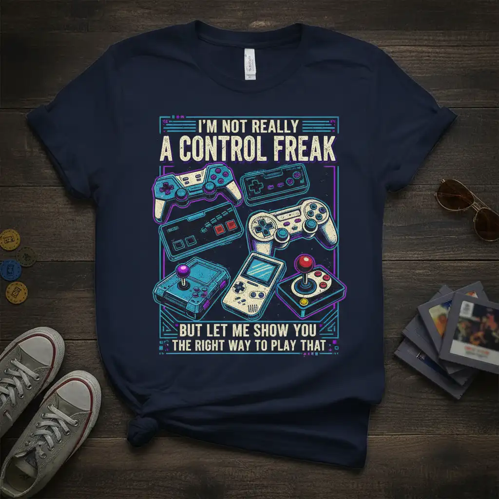 I’m Not Really A Control Freak But Let Me Show You The Right Way To Play That T-Shirt captures the spirit of every dedicated gamer with its witty slogan and nostalgic design. This tee is more than just apparel; it’s a declaration of love for the digital worlds we inhabit and the skills we hone. Perfect for casual wear or showing off at your next gaming convention, this shirt is sure to become a favorite in your collection. It combines humor, passion, and a touch of retro cool.
