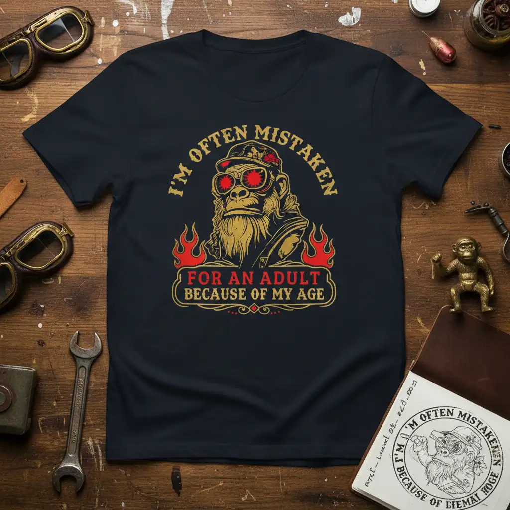 I’m Often Mistaken For An Adult Because Of My Age – this statement tee is designed for those who embrace their unique perspective on life and aging with a hearty dose of humor. It’s more than just a t-shirt; it’s a declaration of wit and a celebration of not taking life too seriously. The striking graphic, featuring a cool, retro-styled ape character, perfectly complements the bold text, making it an instant conversation starter. This design is perfect for anyone who enjoys a good laugh and isn’t afraid to show off their playful side.