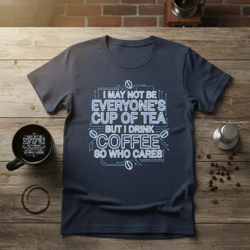 I May Not Be Everyone’s Cup of Tea But I Drink Coffee So Who Cares, this statement t-shirt is designed for the true coffee aficionado who isn’t afraid to stand out. It perfectly captures the spirit of those who find joy and energy in their daily brew, regardless of others’ preferences. This tee is more than just apparel; it’s a declaration of love for coffee and a celebration of individuality. The bold typography and unique graphic elements make it a standout piece in any wardrobe.