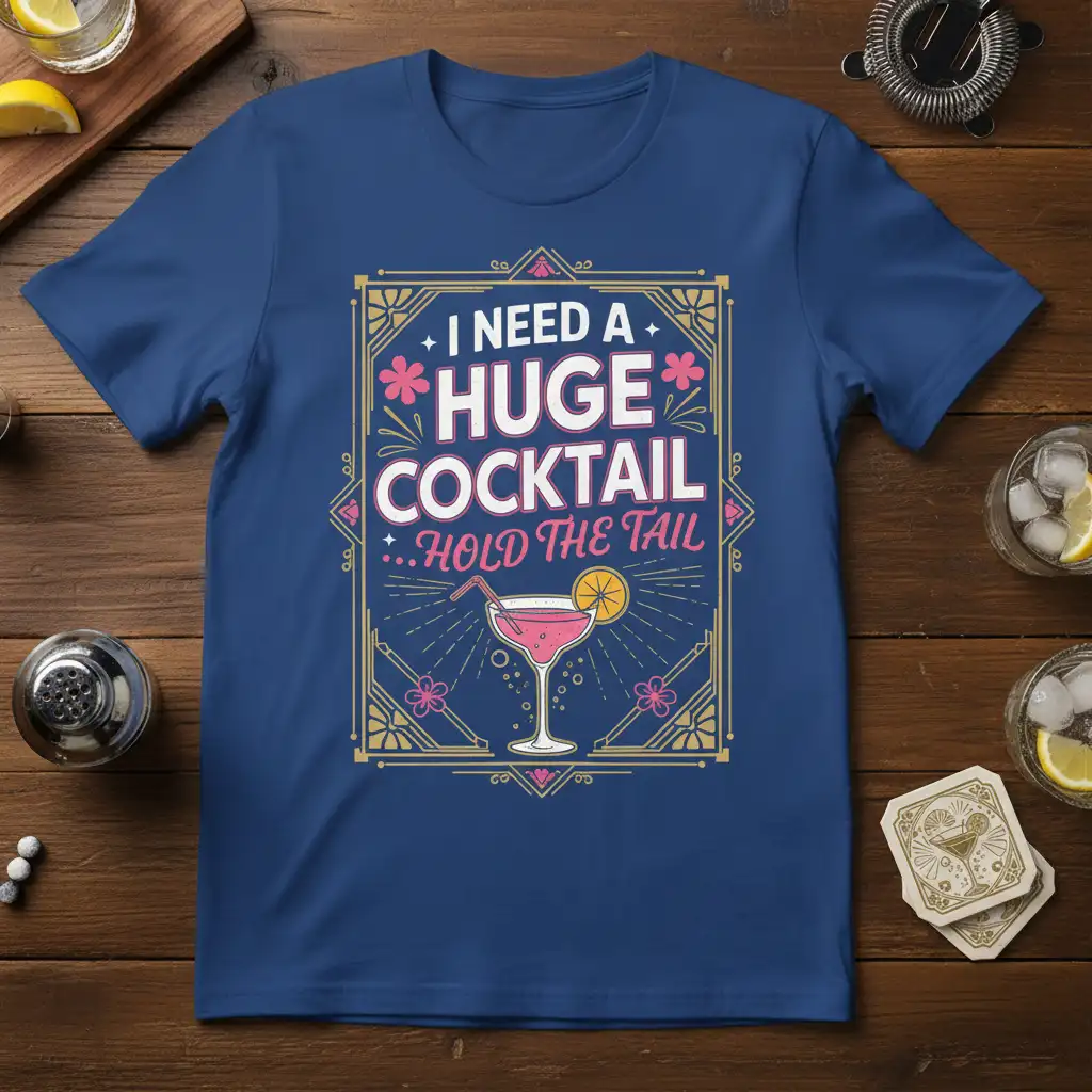 I NEED A HUGE COCKTAIL …HOLD THE TAIL is more than just a phrase; it’s a declaration of intent for anyone who appreciates a good time and a perfectly mixed drink. This t-shirt captures that sentiment with a vibrant, eye-catching design that’s sure to turn heads at any party or casual get-together. It’s crafted for those who know how to enjoy life’s simple pleasures, especially when they come in a tall glass.