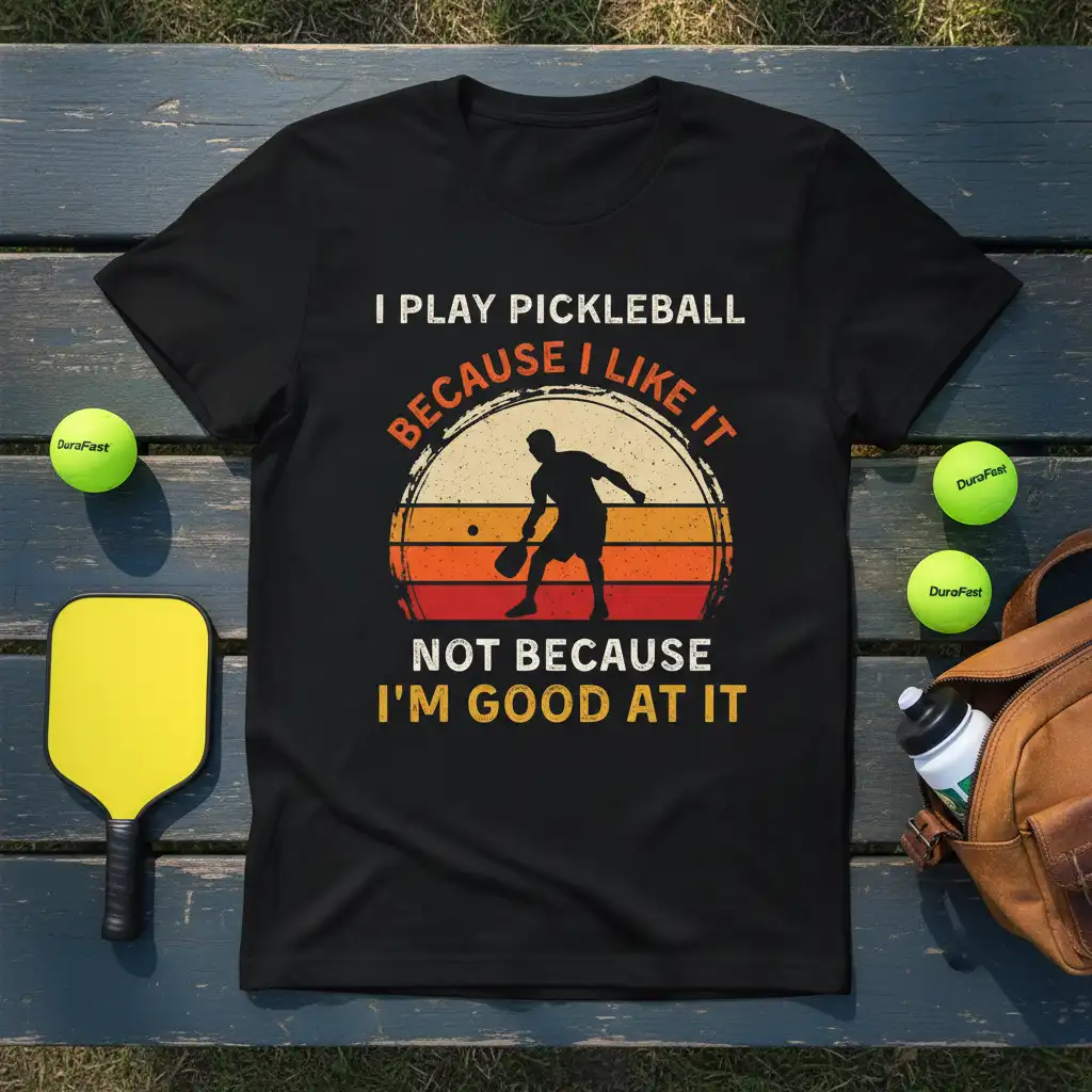 This unique t-shirt is designed for the passionate pickleball player who understands that enjoyment often trumps expertise. The bold text and graphic elements create a striking visual that resonates with the pickleball community. It’s an ideal way to express your personality and your dedication to the fastest-growing sport in America. Wear it to your next game, tournament, or casual outing and let your sense of humor shine through.