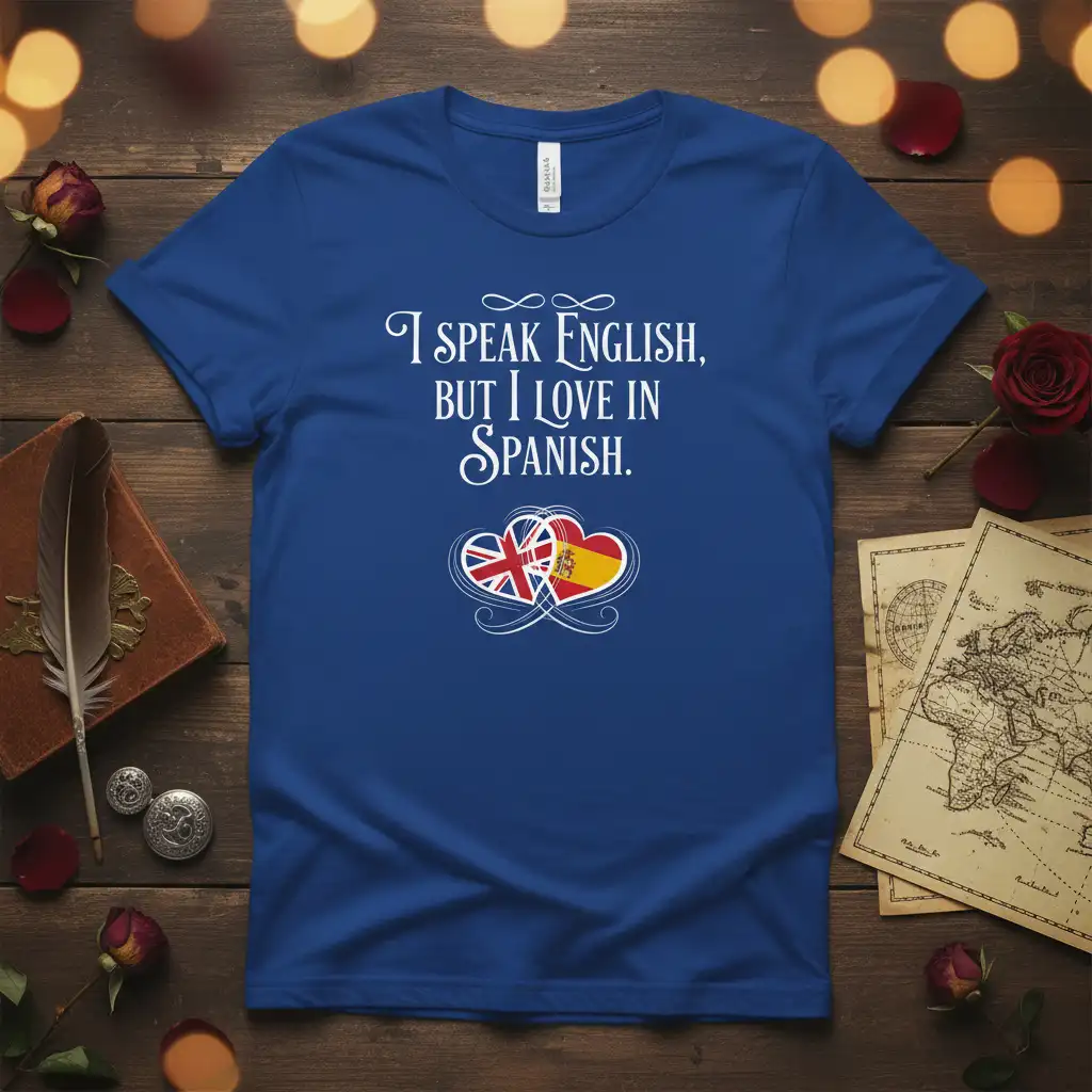 This tee is a testament to the vibrant tapestry of global communication and connection. It resonates with individuals who feel a strong affinity for both English and Spanish-speaking worlds. The design is thoughtfully created to be both visually appealing and deeply meaningful, making it a cherished item for any wardrobe.