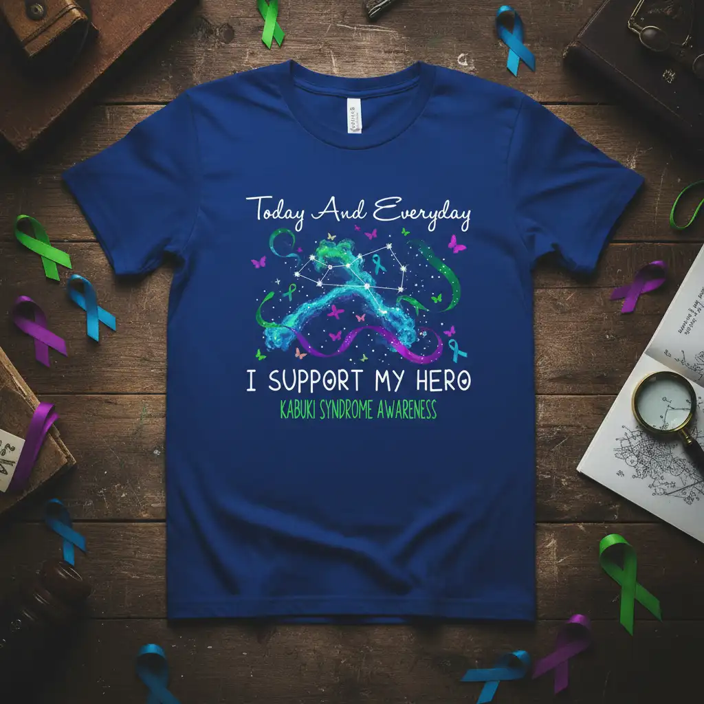 I SUPPORT MY HERO KABUKI SYNDROME AWARENESS T-Shirt is more than just apparel; it’s a statement of love, strength, and unwavering support. This thoughtfully designed tee aims to bring visibility to Kabuki Syndrome, a rare genetic disorder, and honor the incredible individuals who face it every day. By wearing this shirt, you become a beacon of hope and a champion for awareness, letting everyone know that heroes are supported today and everyday. It’s a perfect way to connect with others in the community and spread a message of solidarity.
