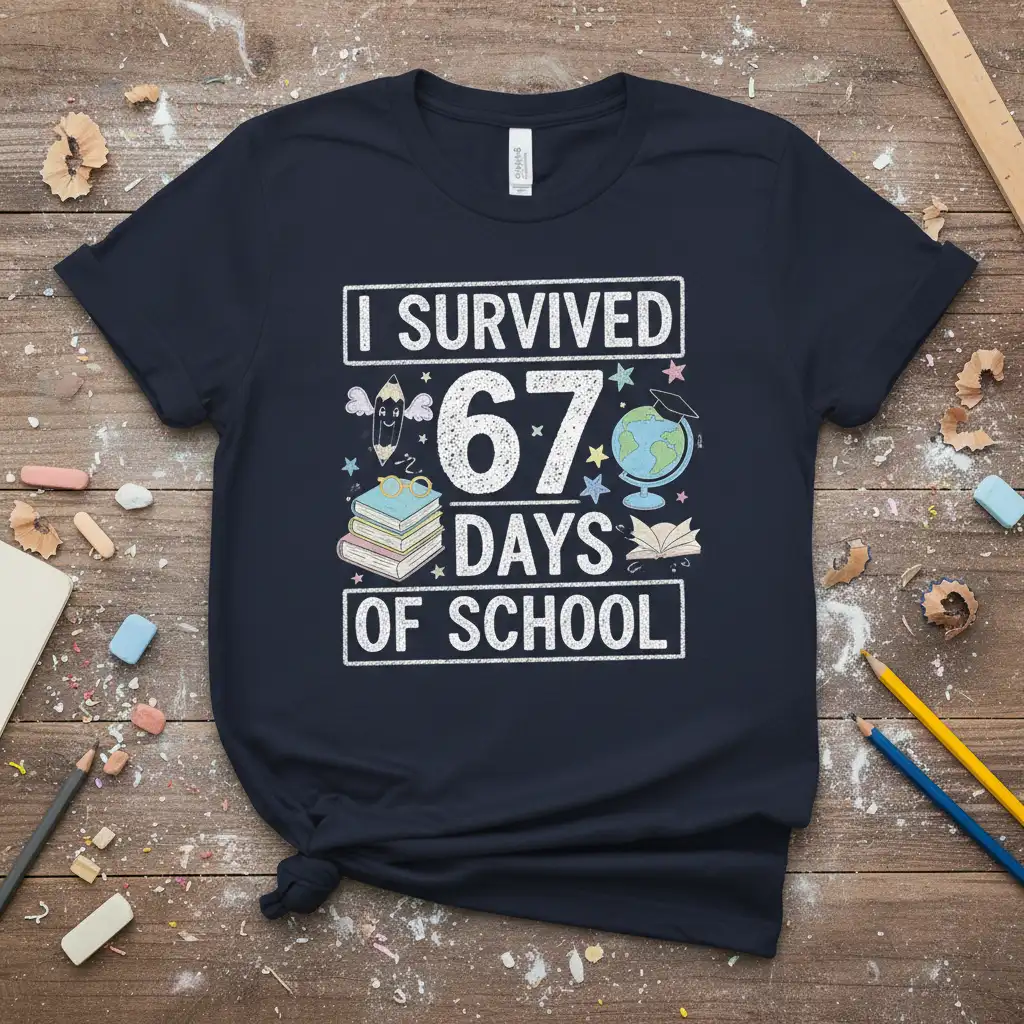 The theme revolves around surviving and thriving through the initial period of schooling. It acknowledges the effort students put in daily, from early mornings to homework sessions. This I SURVIVED 67 DAYS OF SCHOOL design is a testament to their perseverance and a fun way to commemorate this specific academic milestone, making the journey of learning feel more rewarding.