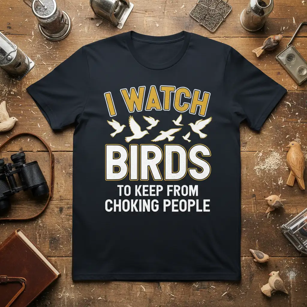 I WATCH BIRDS TO KEEP FROM CHOKING PEOPLE. This unique and humorous t-shirt is designed for the discerning birdwatcher who appreciates a good laugh and a clear message. It’s more than just apparel; it’s a statement piece that showcases your passion for avian observation and your witty personality. The design cleverly combines a love for birds with a humorous twist, making it a conversation starter at any birding event or casual gathering. This shirt is crafted for comfort and durability, ensuring it becomes a favorite in your wardrobe for years to come.