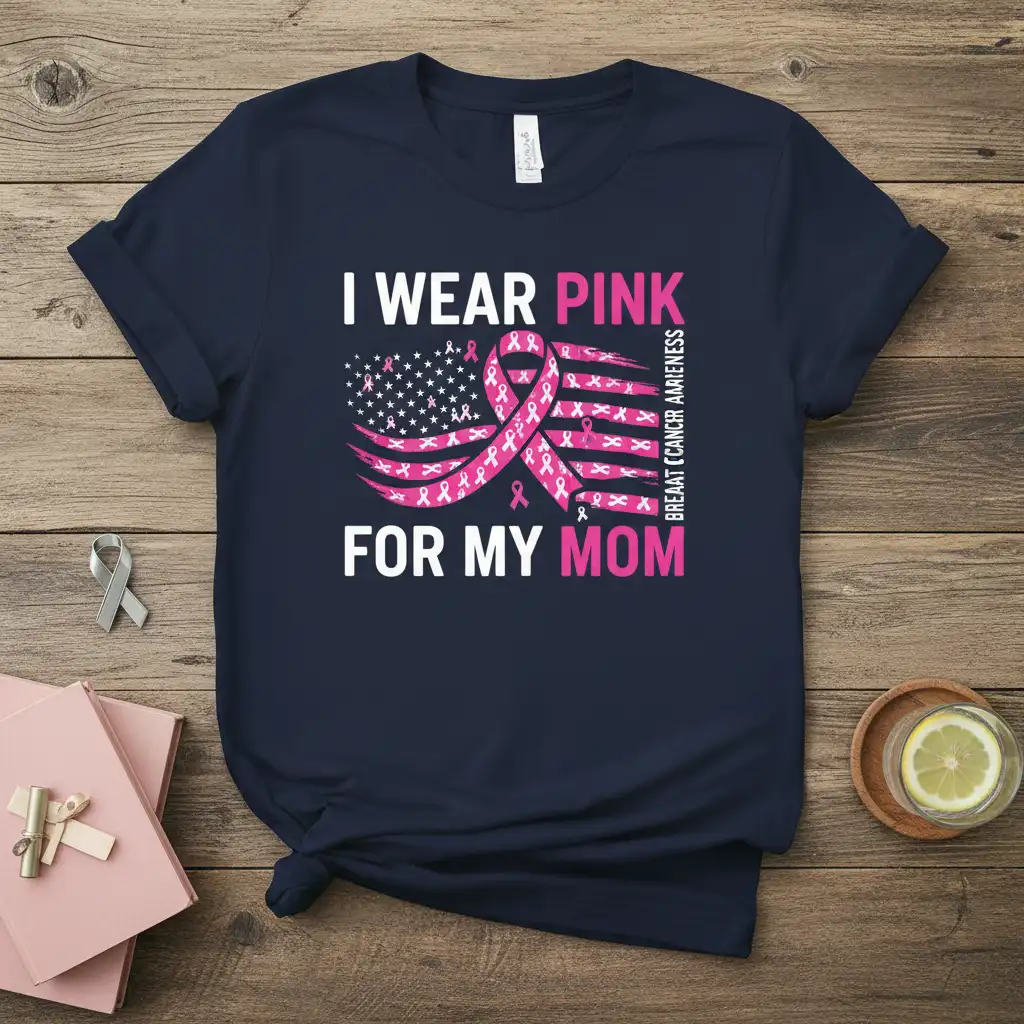 Pick from Black, Navy, Royal, Dark Heather, Red, and White to match your mood and wardrobe staples. Each colorway keeps the I WEAR PINK FOR MY MOM design clear and photo-ready for everyday wear.