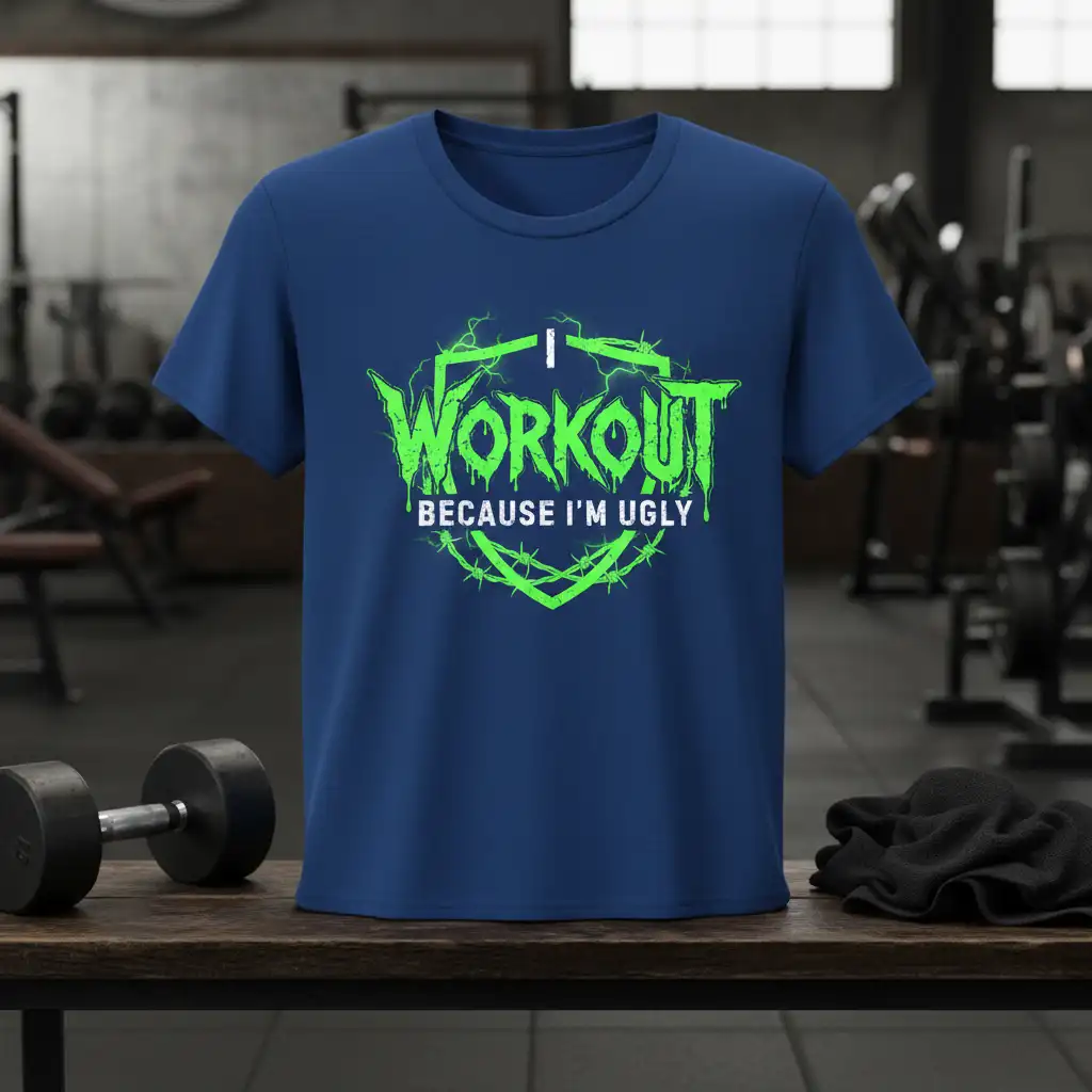Embrace the Grind: The ‘I Workout Because I’m Ugly’ T-Shirt