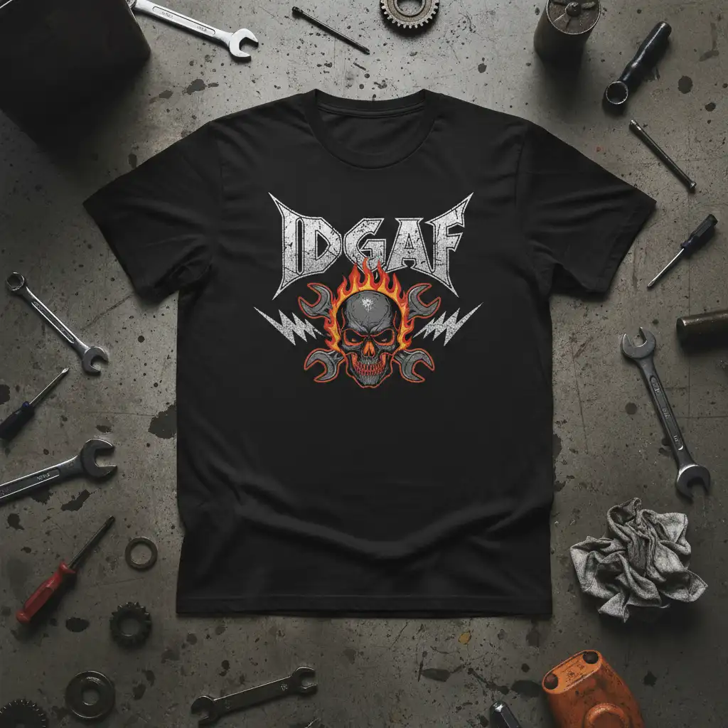 Idgaf Skull Flame T-Shirt Biker Mechanic Rebel