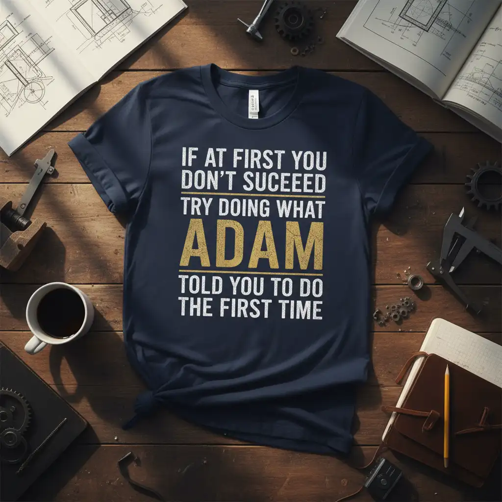 IF AT FIRST YOU DON’T SUCEEED TRY DOING WHAT ADAM TOLD YOU TO DO THE FIRST TIME – If At First You Don’t Succeed Try Doing What Adam Told You To Do The First Time makes a statement with its witty and relatable humor. This design is perfect for anyone who appreciates clever sayings and a good laugh, especially if their name is Adam or they know someone who always has the best advice. It’s more than just a t-shirt; it’s a conversation starter and a way to express your personality with a touch of playful wisdom. The eye-catching typography ensures the message is clear and impactful.