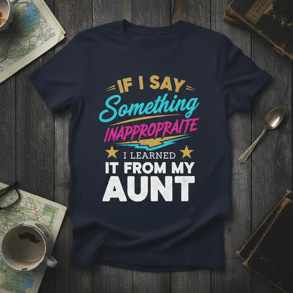 Don’t miss out on this opportunity to own or gift a truly unique and funny piece of apparel. This “If I Say Something Inappropriate I Learned It From My Aunt” t-shirt is more than just clothing; it’s a celebration of family, humor, and those unforgettable aunt-like influences. Order yours today and be ready to share a laugh and a knowing glance with fellow fans of awesome aunts. It’s the perfect way to add some personality and humor to your wardrobe.