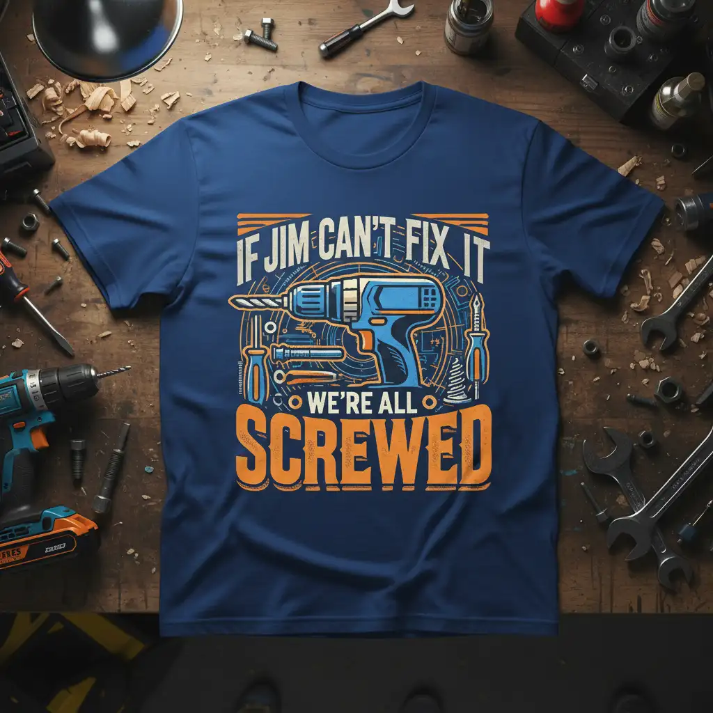 Don’t miss out on the opportunity to own this hilarious and well-crafted “If Jim Can’t Fix It We’re All Screwed” T-Shirt. It’s the perfect blend of humor, quality, and style, making it an ideal addition to your collection or a memorable gift. Click ‘Add to Cart’ now and bring a smile to the face of the handyman in your life, or treat yourself to this unique piece of apparel that is sure to become a favorite. Experience the comfort and make a statement with this unforgettable design.